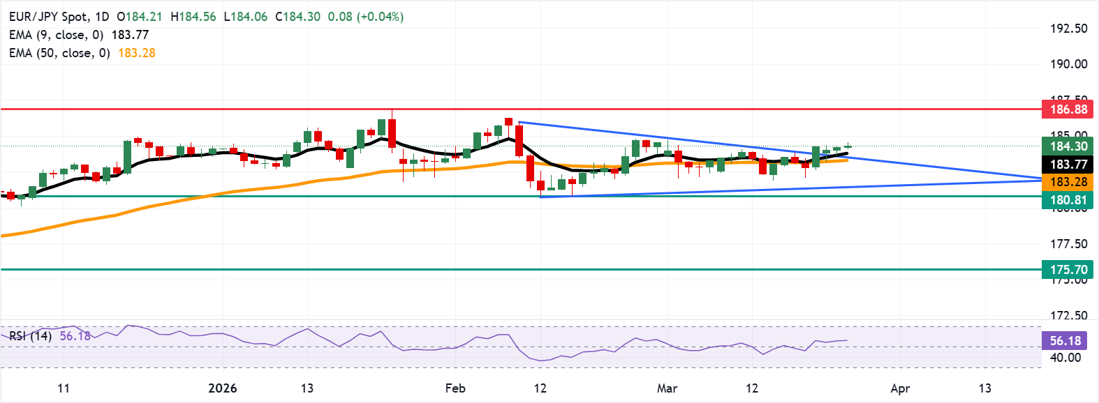 - EUR/JPY may rise toward the record high of 186.88.